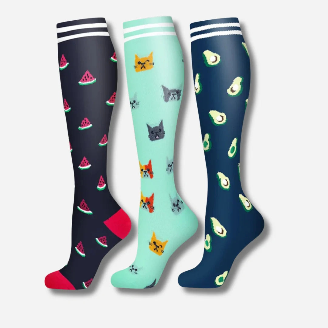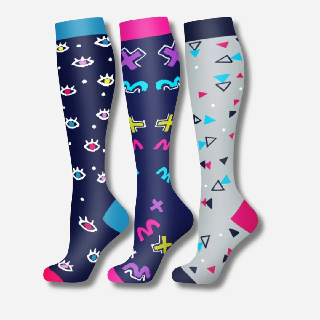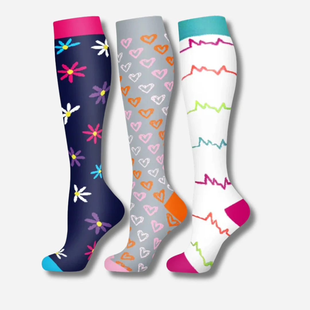 ErgiloJoy - 3-pack mönstrade stödstrumpor